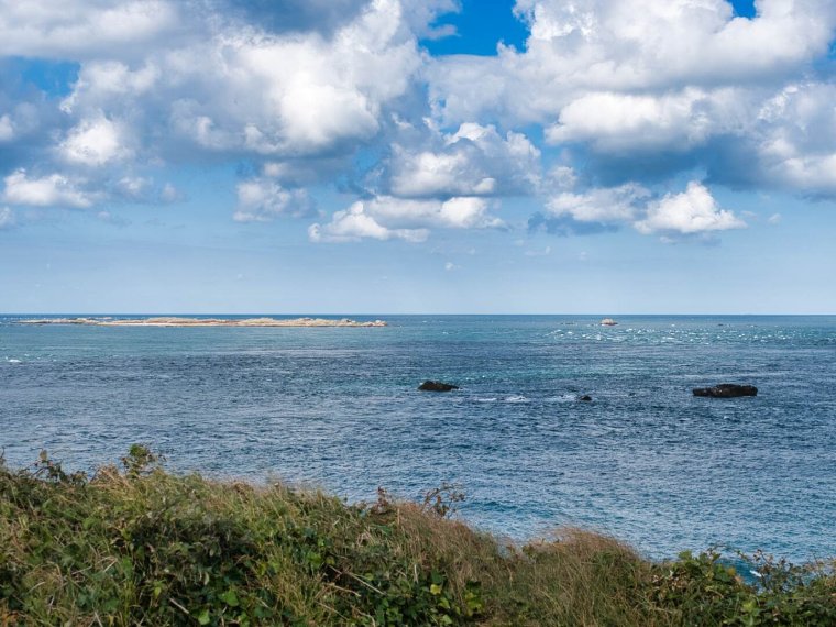 Une belle traversée bien rapide de Cherbourg jusque Alderney grâce aux forts courants. Mais nous avions pris bien large.