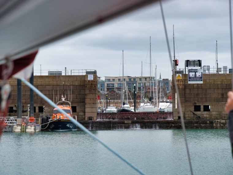 Puis arrivée au port et attente pour rentrer dans le bassin.
